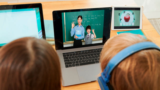支持多个教室同上一堂课; 远端教室可以同时观看教学课件与老师画面;远端教室可以与本地教室共同参与互动。